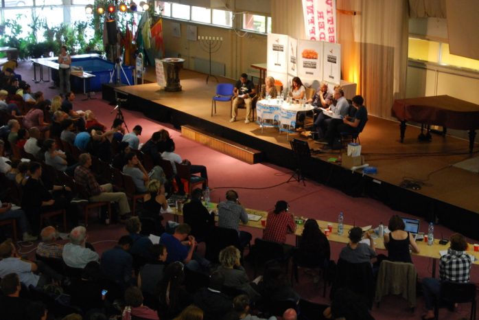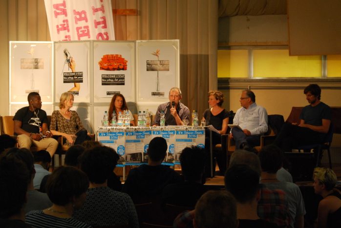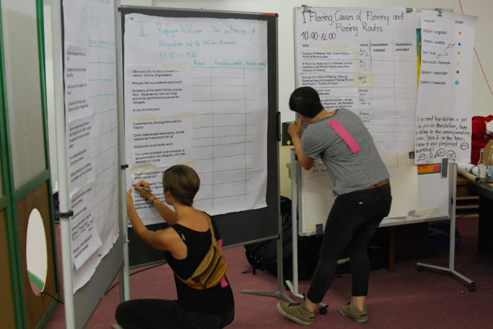Zu Beginn der finalen Runde präsentierten drei „Beobachterinnen“ zunächst ihre Erkenntnisse, die sie aus den 33 Workshops rund um die Themen Asyl, Flucht, Migration und Rassismus gezogen haben. Diskutiert wurde in den Seminaren etwa darüber, inwiefern die seit vergangenem Sommer andauernde Solidaritätswelle eine soziale Bewegung darstellt und welche Aktionsformen – von „seicht“ bis militant – geeignet und gerechtfertigt sind, um die Ziele durchzusetzen. Deutlich wurde dabei auch, dass die Arbeit mit Geflüchteten sowie deren Sichtbarmachung und -werdung erst am Anfang stehen. So berichtete eine der Beobachterinnen, dass ein von Geflüchteten organisierter Workshop fast ausschließlich von anderen Geflüchteten besucht wurde. Zudem sei der Anteil geflohener Menschen an der Gesamtbesucherzahl gering gewesen, insbesondere was Frauen betrifft.