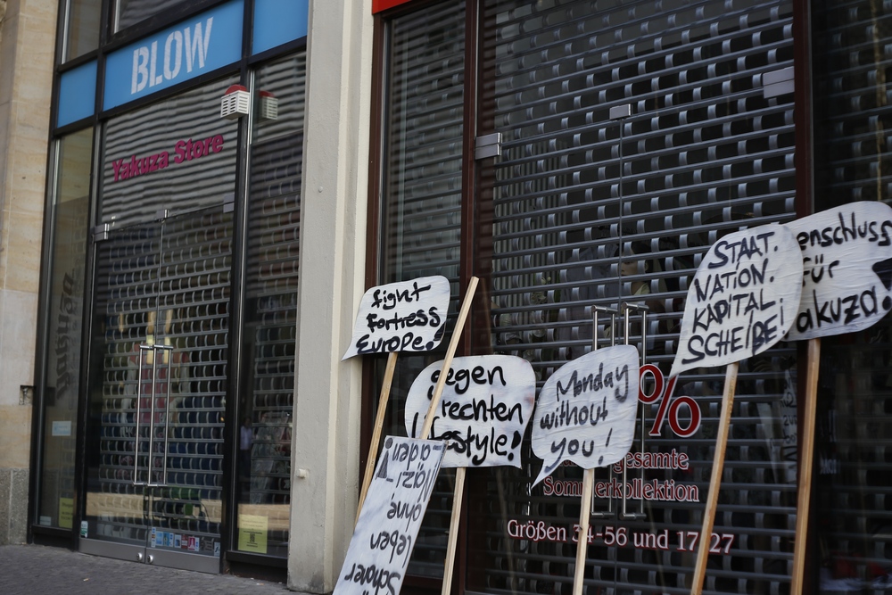 Ein LEGIDA-freier Montag, zwei entspannte Demonstrationen und eine Debatte über das Modelabel „Yakuza“. So lässt sich wohl recht vereinfacht der 1. August 2016 auf dem Leipziger Richard-Wagner-Platz umschreiben. Die Antifa-Kampagne „a monday without you“ nahm sich das „Yakuza“-Geschäft „BLOW“ im Brühl 4 als Gegenstand antifaschistischer Kritik vor und wollte damit rechte Strukturen offenlegen. Die Argumentation jedoch bewegt sich auf ziemlich wackliger Grundlage.