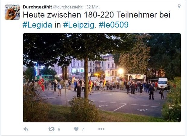 Gleichzeitig darf man all die heutigen Vorgänge auch als Zeichen werten, dass die Organisation des Leipziger Vereins ziemlich am Boden ist. Die „Promis“, wie Tatjana Festerling, haben sich zurückgezogen und auch heute ist trotz Unterstützung von allen rechtsradikalen Kräften wie „Offensive für Deutschland“ und „Wir für Leipzig“ (Ex NPD-Leipzig bei Facebook) das Häuflein erneut kümmerlich geblieben.