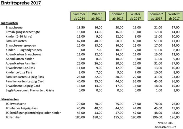 So steigt der Preis für ein Tagesticket in der Sommersaison (die im März beginnt) für Erwachsene von 18,50 Euro auf 20 Euro, Kinder und Ermäßigungsberechtigte zahlen künftig einen Euro mehr und damit 12 Euro bzw. 16 Euro. Das Familienticket steigt um drei Euro auf 50 Euro.