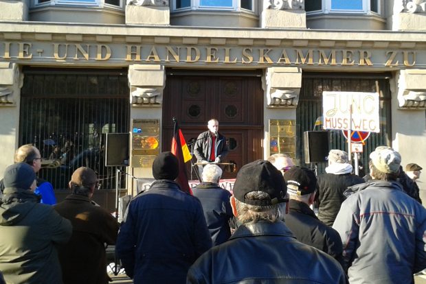 Das Aktionsnetzwerk „Leipzig nimmt Platz“ hatte auf dem Willy-Brandt-Platz eine weitere Kundgebung organisiert. Hier sprachen unter anderem die Linke-Landtagsabgeordneten Juliane Nagel und Marco Böhme. Nach einem Blockadeaufruf im Januar 2015 hatte die Staatsanwaltschaft gegen Nagel ermittelt. Später folgte ein Strafbefehl in Höhe von 3.500 Euro. Mittlerweile sei das Verfahren gegen eine Geldauflage eingestellt worden, erklärte die Politikern.