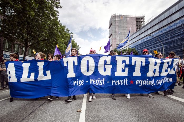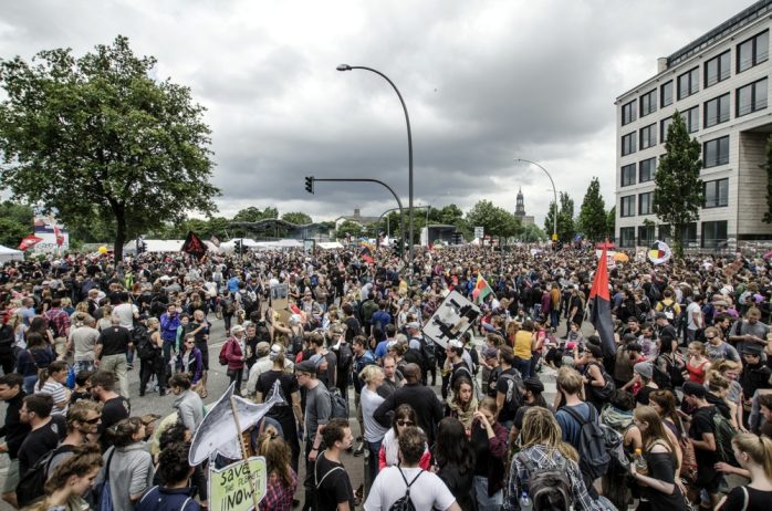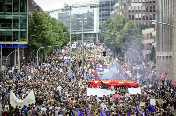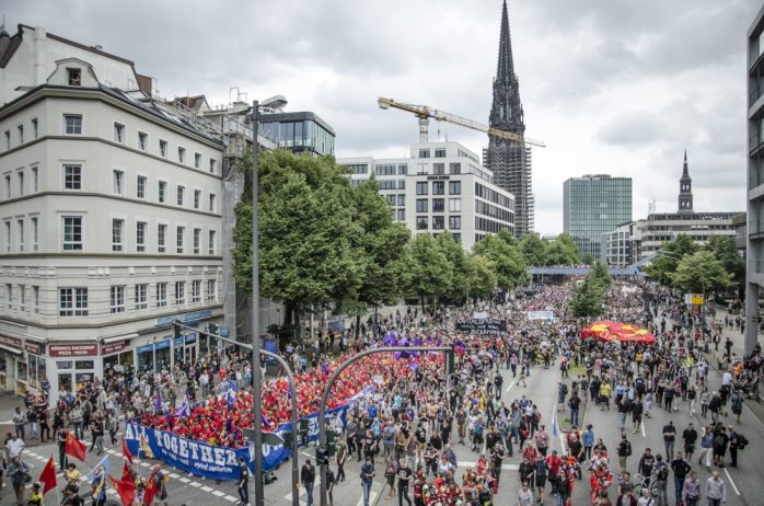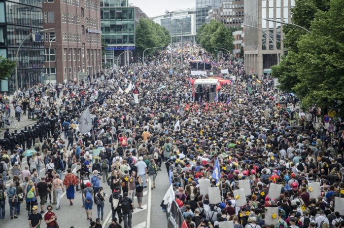 Der Protest der Menschenmengen richtete sich im Kern gegen die G20 und im Speziellen gegen Kapitalismus, Ausbeutung, Unterdrückung, Abschottung, die Leugnung des Klimawandels und weitere Themen. Zu sehen waren auch fragwürdige Gruppen beziehungsweise Botschaften, darunter ein Schild mit der von Pegida-Demos bekannten Aufschrift „Ami Go Home“, ein antisemitisch konnotierter Riesenkraken oder Werbung für die gegen Israel gerichtete Boykottbewegung BDS. Auf einem Banner wurden mehrere G20-Teilnehmer als menschlicher Müll dargestellt, der in einem Papierkorb entsorgt wurde.