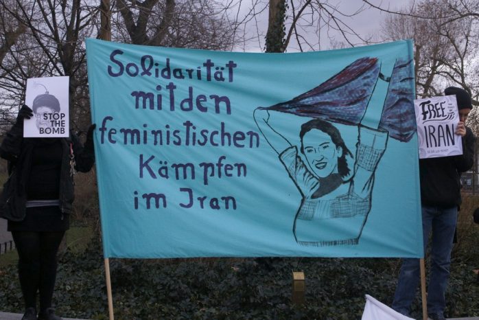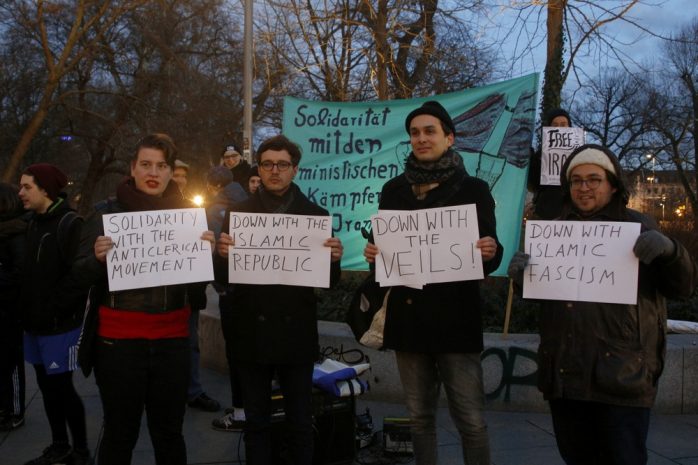 In mehreren europäischen Städten solidarisierten sich zum Neujahrstag Menschen mit den aktuellen Protesten im Iran. Zirka 100 Personen versammelten sich ebenfalls auf dem Wilhelm-Leuschner-Platz in Leipzig bei einer Kundgebung unter dem Motto "Solidarität mit den antiklerikalen Aufständen im Iran!" des Leipziger Bündnisses gegen die Irandelegation.