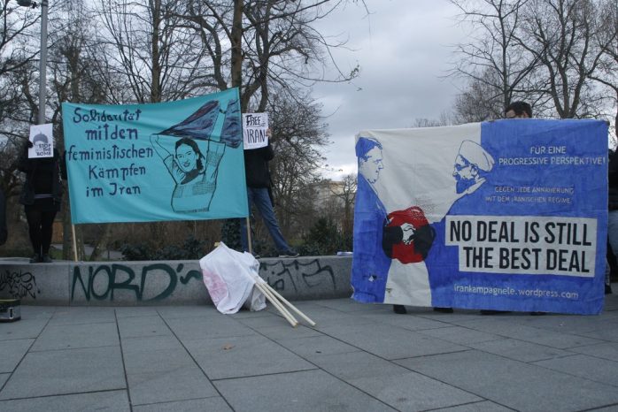 Einen weiteren Kritikpunkt sieht das Bündnis in der wirtschaftlichen und politischen Zusammenarbeit mit dem Iran. Durch die Beschwichtigungspolitik werde die Verletzung von Menschenrechten im Land, die Unterstützung von Terrororganisationen wie der Hisbollah und der Hamas, das Atomwaffenprogramm oder die Bedrohung Israels nicht eingedämmt.