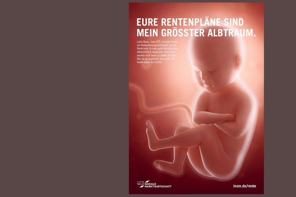 “In ihren Koalitionsverhandlungen können Union und SPD demografischen Wandel nicht wegdiskutieren. Dennoch versuchen sie ihn zu ignorieren. Anders ist nicht zu erklären, warum sie das Rentenniveau festschreiben und die Rentenformel manipulieren wollen. Die Initiative Neue Soziale Marktwirtschaft (INSM) fordert Union und SPD daher heute in ganzseitigen Zeitungsanzeigen auf, wieder zu einer fairen und gerechten Rentenpolitik zurückzukehren”, polterte die Marketing-Speerspitze der Superreichen gegen den bislang auch nur angedachten Versuch, den Niedriglöhnern im Land endlich wieder eine existenzsichernde Rente zu verschaffen.