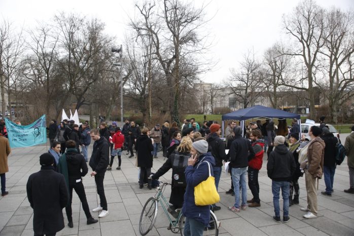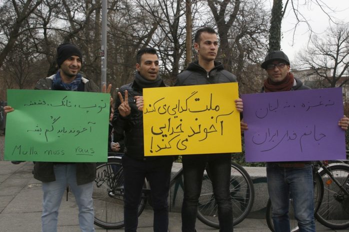 Die Sprachchöre, Transparente und Schilder richteten sich gegen das iranische Regime sowie gegen einen versöhnlichen Kurs der deutschen Außenpolitik. Allerdings kam es während der Veranstaltung zu Spannungen zwischen den Teilnehmern und einigen Organisatoren. Eine größere Demonstrationsgruppe, die bereits zu Neujahr anwesend war, brachte ihre Transparente als auch israelische sowie US-amerikanische Fahnen mit. Es kam zu vermehrten Diskussionen unter den anwesenden Teilnehmern.