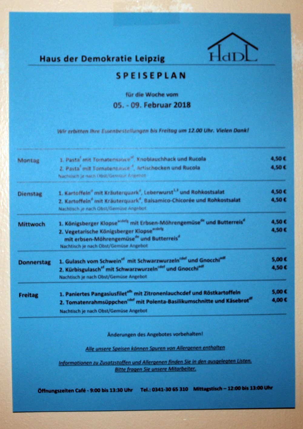 Lecker Mittagessen gibt es dann im Café im Haus der Demokratie. Zum Beispiel.
