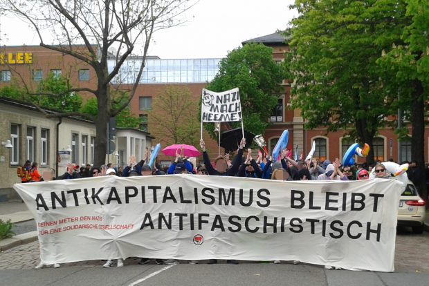 In Chemnitz und Erfurt demonstrierten am 1. Mai insgesamt mehr als 1.000 Neonazis. Trotz mehrerer Blockadeversuche konnten die Teilnehmenden ihre geplanten Routen laufen. Ein AfD-Aufzug in Querfurt musste hingegen einen Umweg nehmen, weil Gegendemonstranten auf die Strecke gelangt waren.