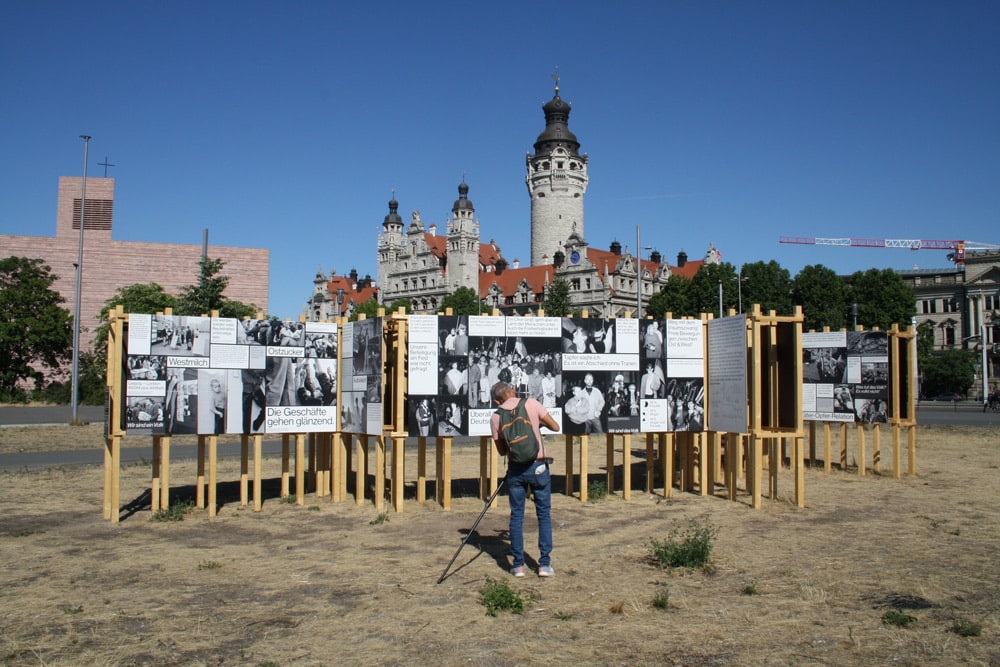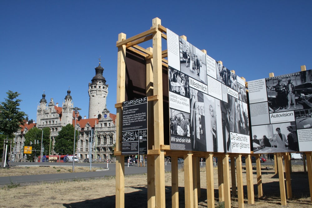 Ein bisschen davon war seit dem 19. Juni auf dem Wilhelm-Leuschner-Platz in der Installation mit Fotografien von Andreas Rost, Textcollagen von Elske Rosenfeld und Notizen aus dem Jahr 1990 von Christian Borchert und Texten von Jan Wenzel zu sehen. Der Rasen erzählt davon, wie viele Leipziger sich für diesen Blick zurück ins Jahr 1990 interessiert haben.