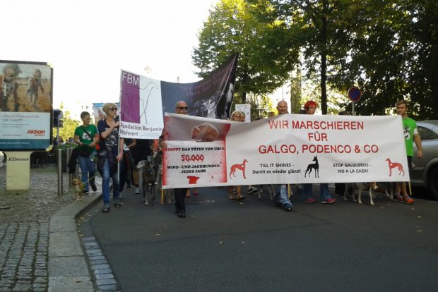 Die Teilnehmenden forderten, bestehende Tierschutzgesetze auch auf Jagdhunde anzuwenden und die „Hetzjagd mit Galgos“ zu verbieten. Spanien ist das einzige Land in der Europäischen Union, in dem dies noch erlaubt ist.