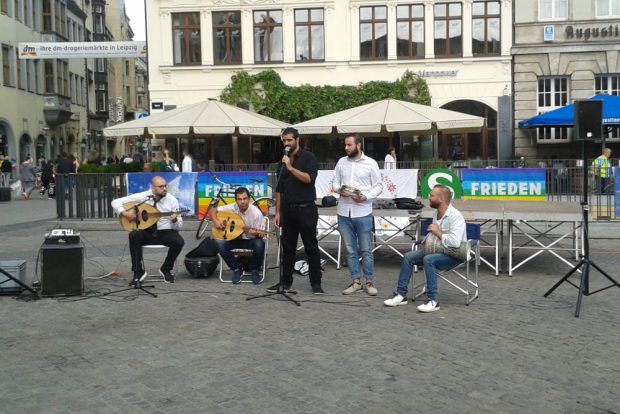 Der Weltfriedenstag wurde auch in diesem Jahr in Leipzig zum Anlass genommen, in zentraler Lage eine Kundgebung durchzuführen. Ausgangspunkt ist der Überfall des nationalsozialistischen Deutschlands auf Polen am 1. September 1939. Mit diesem Angriff begann vor knapp 80 Jahren der Zweite Weltkrieg. Bei der diesjährigen Kundgebung sei die weltweite Aufrüstung das zentrale Thema, sagte ein Veranstalter zu Beginn.
