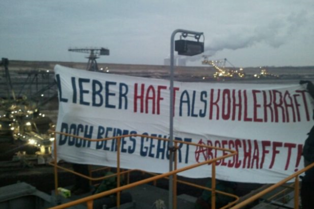 Im Tagebau hatten die Aktivisten ein Spruchband mit der Aufschrift „Lieber Haft als Kohlekraft – Doch beides gehört abgeschafft“ präsentiert. Laut Polizei ignorierten sie die Aufforderungen, den Bagger zu verlassen. Weiter heißt es in einer Pressemitteilung: „Aus diesem Grund wurden sie durch Einsatzkräfte der Polizei vom Bagger heruntergeholt. Drei von ihnen leisteten dabei Widerstand.“
