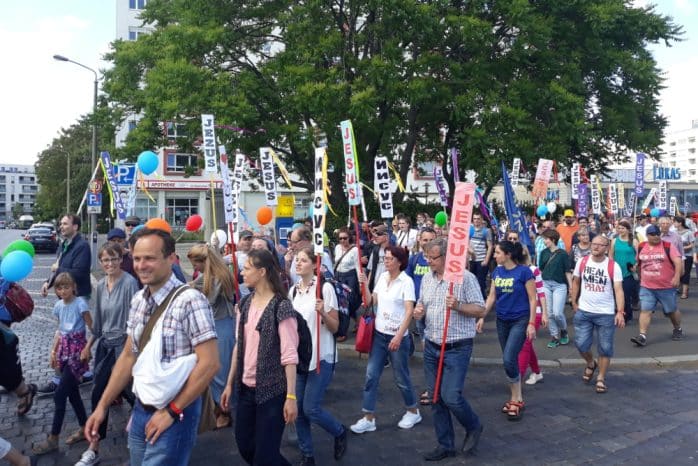 „Es ist Zeit, als Volk Gottes endlich wieder gesammelt auf die Straße zu gehen“, hieß es in der Ankündigung für den Marsch. Gekommen waren Menschen aller Altersklassen, die fröhlich über die Straße tanzten, „Halleluja“ sangen, Fahnen schwenkten und – fast so wie bei Fußball-Fans – gemeinsam „Jesus“ skandierten. Viele Passanten reagierten ungläubig.