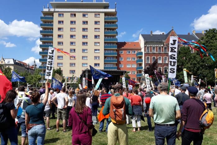 In den zurückliegenden Jahrhunderten wurde in Leipzig so manch bedeutender Kampf ausgetragen. Besonders berühmt ist die Völkerschlacht im Oktober 1813, die Napoleon die entscheidende Niederlage zufügte. Nun war es wieder so weit: Am Samstag, den 8. Juni 2019, ging der ewige Kampf des Guten gegen das Böse in die nächste Runde. Auf dem Bayrischen Platz trafen die Anhänger Jesu und Satans aufeinander.