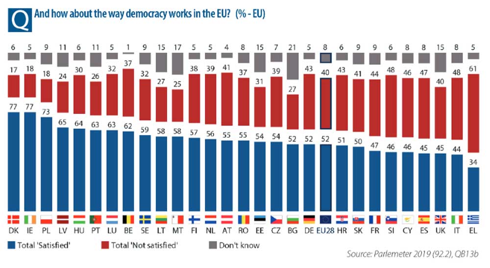 Zufriedenheit mit der Demokratie in der EU. Grafik: Eurobarometer