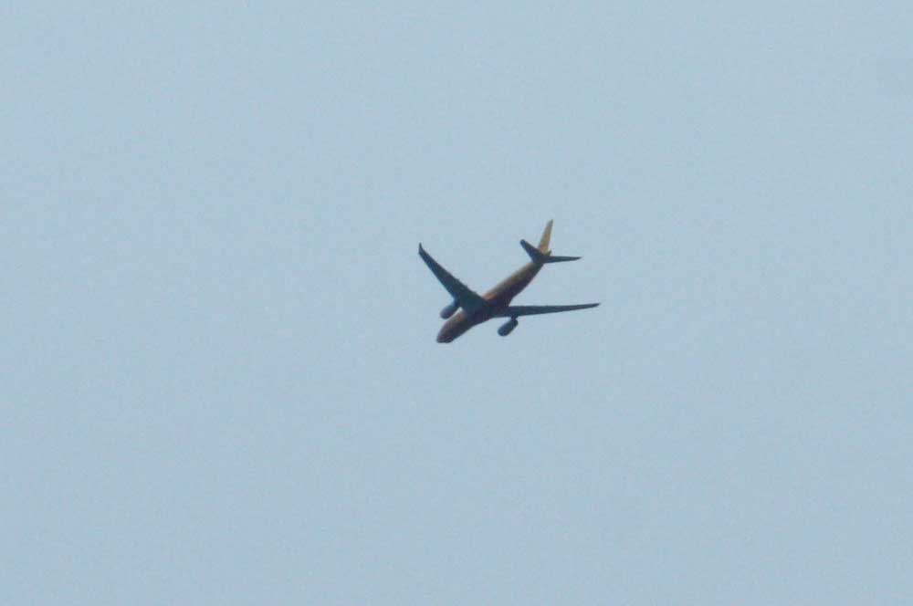 Apropos Faulheit: Das hier im Bild ist der übliche DHL-Flieger, der Sonntag für Sonntag 14:30 Uhr rotzfrech übers Leipziger Stadtgebiet abkürzt. Was natürlich weder die Flugraumüberwachung zu kümmern scheint noch seinen Arbeitgeber. Weiß ja eh keiner in Sachsen, wer eigentlich für was verantwortlich ist.