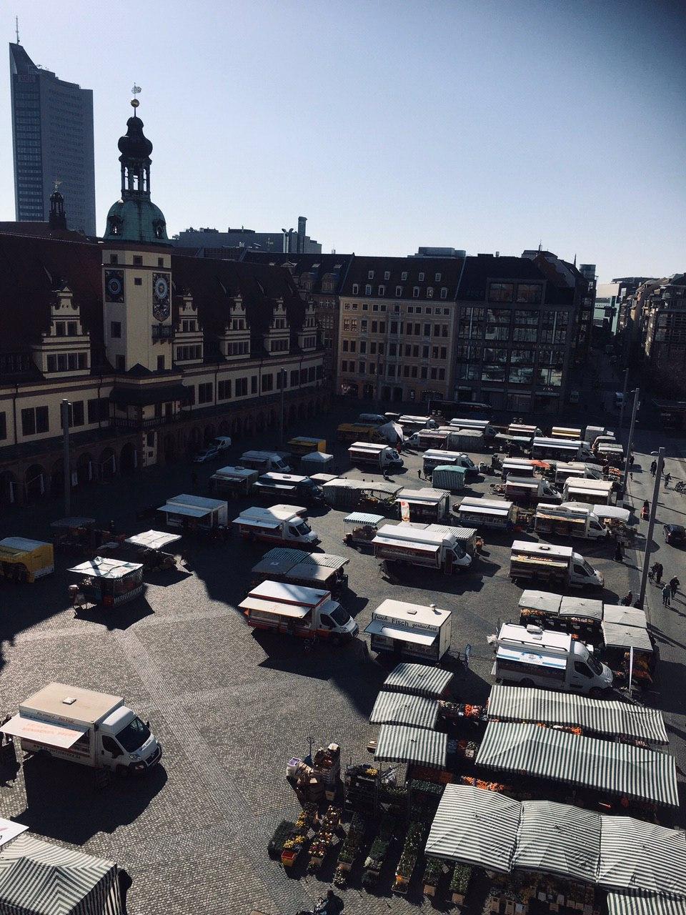 Wurde heute um 14 Uhr abgebrochen und findet vorerst nicht mehr statt: Der Wochenmarkt in Leipzig auf dem Marktplatz. Foto: Privat