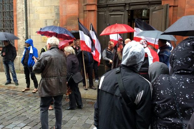 Reichsflaggen und Rassismus vor der Nikolaikirche