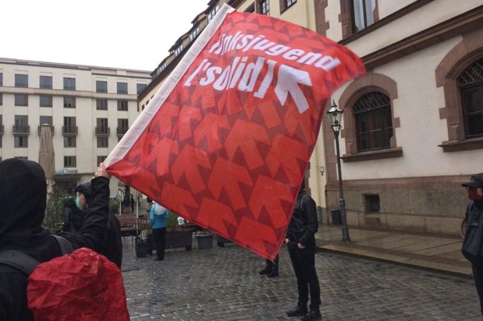 Bereits vor Beginn der Kundgebung von „Leipzig nimmt Platz“ hatten sich dabei einige Gegner/-innen der Corona-Maßnahmen auf dem Nikolaikirchhof versammelt. Einige trugen direkt vor dem Haupteingang der Nikolaikirche die bei Rechtsradikalen beliebte Reichsflagge mit schwarz-weiß-roten Farben. Als Beamte der Polizei die Ansammlung vor der Nikolaikirche in Augenschein nahmen, waren die Fahnen nach etwa 15 Minuten wieder verschwunden. Auf L-IZ.de-Nachfrage wollten sich die Träger nicht zu ihren Anliegen äußern.