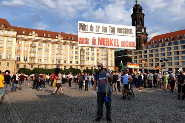 Nach zweiwöchiger Pause hatte PEGIDA („Patriotische Europäer gegen die Islamisierung des Abendlandes“) Dresden am Montagabend, 15. Juni 2020, erneut zur Versammlung mit anschließendem „Spaziergang“ auf den Dresdner Altmarkt gerufen. Mit verhaltenem Erfolg: Dem Aufruf folgten laut Polizeiangaben rund 650 Pegida-Anhänger/-innen, welche sich zudem um die 1.000 Menschen gegenübersahen, die sich unter dem Motto „Gemeinsam gegen den Faschismus“ gegen die Pegida-Kundgebungen stellten. Aus Leipzig war Alexander Kleine, Chef der Ortsgruppe der „Identitären Bewegung“, als PEGIDA-Redegast angereist.