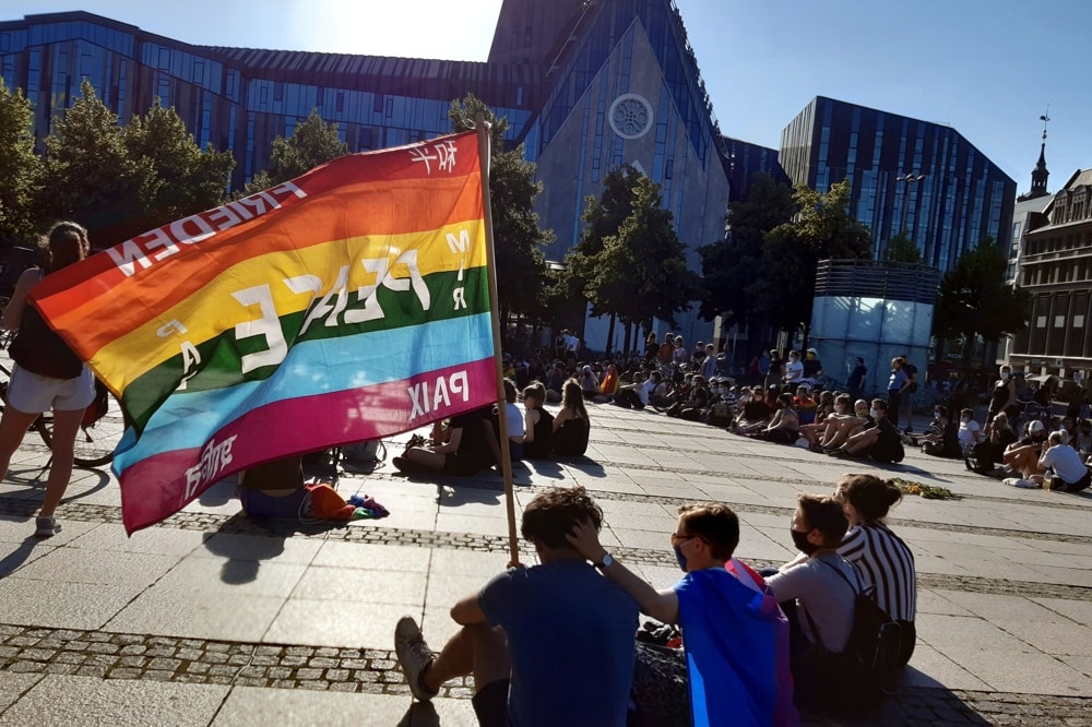 Was heute Abend auf dem Leipziger Augustusplatz stattfand, würde in gleicher Form in Ägypten wohl Verhaftungen und Hausdurchsuchungen zur Folge haben: Eine Mahnwache für die queere Aktivistin Sarah Hegazi, bei der Regenbogenflaggen – das Zeichen der LGBTQI-Community – geschwenkt wurden. Und Repressionen zur Sprache kamen, denen viele nicht-heterosexuelle Menschen weltweit ausgesetzt sind. Gekommen waren über 100 Menschen.