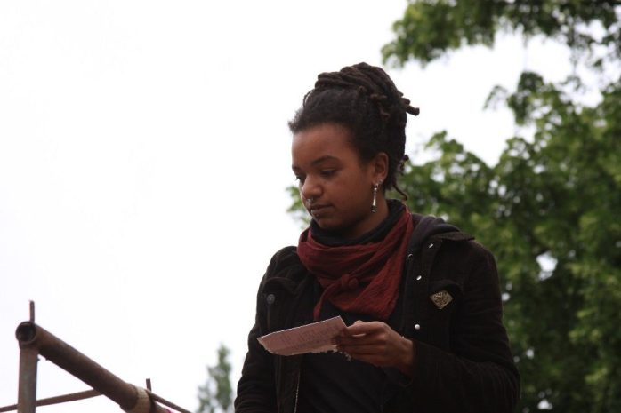 Dass Rassismus auch in Deutschland und in der deutschen Polizei alltäglich stattfindet, machte eine weitere Rednerin klar. Sie teilte mit den Demonstrationsteilnehmer/-innen ihre Erfahrungen mit deutschen Justizbeamten. Immer wieder würde sie fadenscheinigen Kontrollen unterzogen, Beamte spekulierten in ihrer Gegenwart über ihre Herkunft.