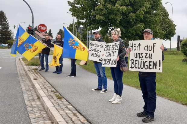 Gespräche mit Protestierenden bestätigen dieses realitätsferne Weltbild. Ein in Ebersbach demonstrierender Mann behauptet am 31. Mai, „das mit Corona war alles von der Regierung geplant“. Da man „herkömmlichen Krieg“ heutzutage nicht mehr führen könne, „machen die es jetzt, indem sie die Wirtschaft runterfahren“. „Und nächstes Jahr wird neues Geld gedruckt.“