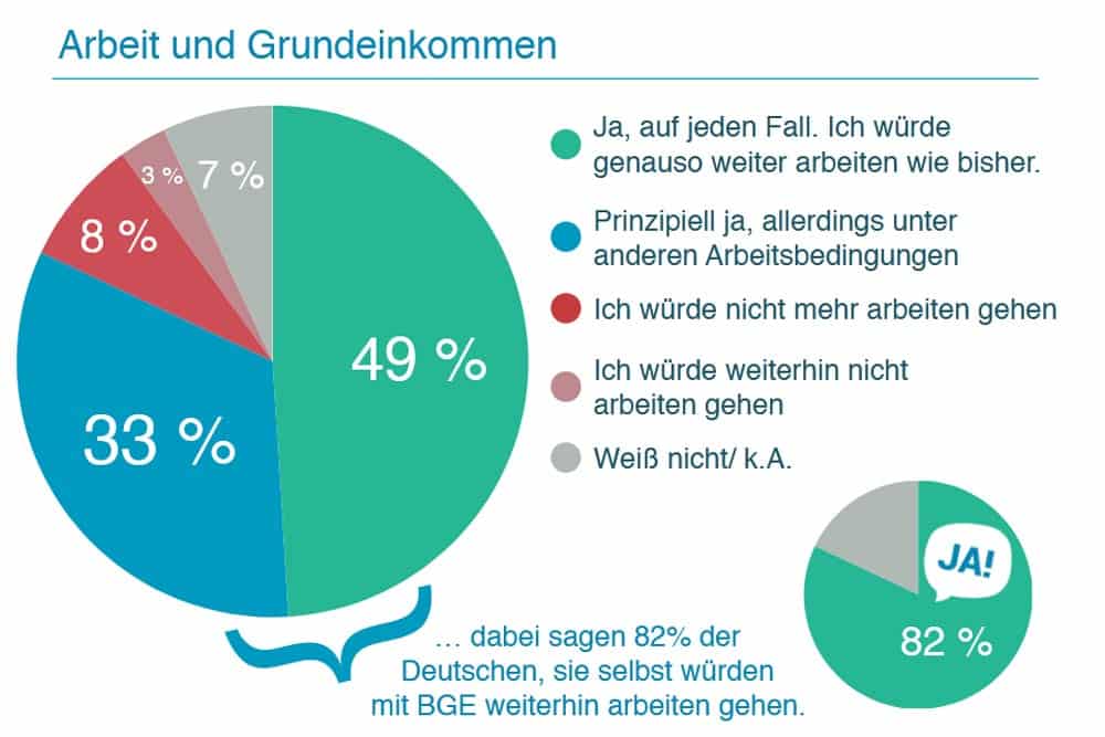 82 Prozent sagten, dass sie trotzdem weiter arbeiten würde. Das ist das, was die Gegner des Grundeinkommens einfach nicht sehen wollen: Dass sich Menschen auch über Arbeit definieren, und zwar über gute Arbeit, wo sie ihr Können zeigen können und Anerkennung finden.