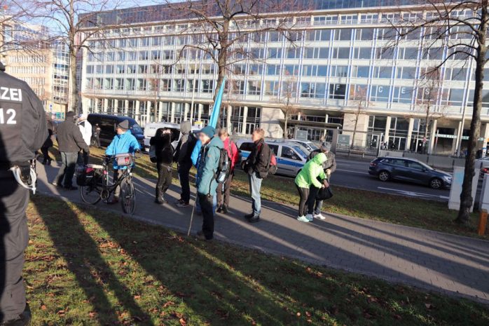 Mittlerweile lässt sich wohl mit einiger Sicherheit das Zwischenfazit ziehen, dass die Pandemie-Leugner/-innen ihr großes Ziel nicht erreicht haben. Ein Aufzug über den Innenstadtring fand bislang nicht statt und ist in Anbetracht der Zahlenverhältnisse bei ihnen und bei Polizei beziehungsweise Gegenprotest sehr unwahrscheinlich. Aktuell stellt sich wohl vor allem noch die Frage, wie es wieder nach Hause geht.