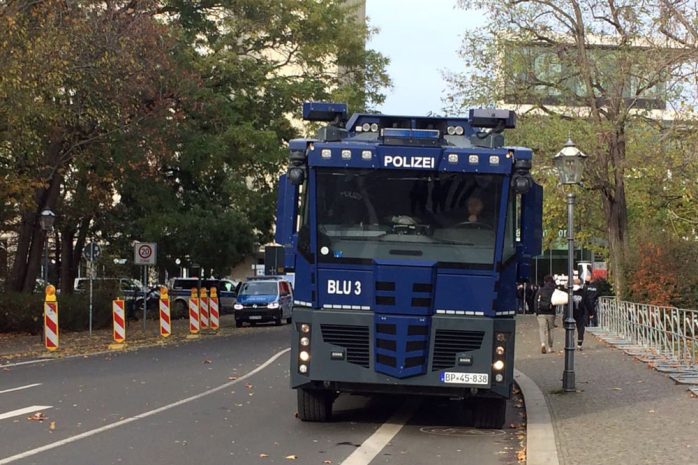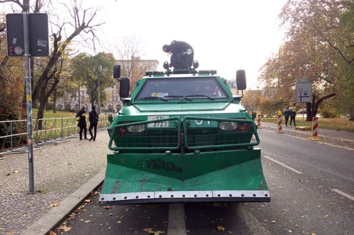 Dort befinden sich einerseits mehrere tausend Gegendemonstrant/-innen bei regulär angemeldeten Kundgebungen. Allerdings tauchen andererseits auch immer mehr Pandemie-Leugner/-innen dort auf. Die Polizei konzentriert sich mit ihren Einheiten sowie Reiterstaffel und Wasserwerfern zunehmend auf diesen Ort. Teilweise mischen sich die Lager bereits. Insgesamt scheint die Lage aber noch unter Kontrolle.