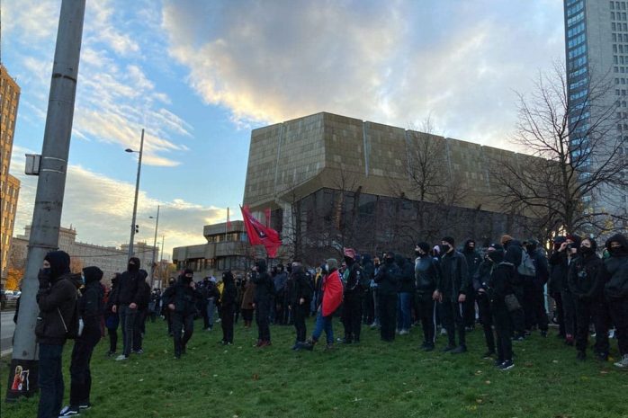 Rund um den Augustusplatz treffen Pandemie-Leugner/-innen und Gegendemonstrant/-innen immer häufiger aufeinander. So tauchten vor dem Radisson Blu mehrere Neonazis auf, denen Antifaschist/-innen auf der Gewandhausseite des Augustusplatzes lautstark entgegentraten. Vereinzelt flogen Gegenstände. Nun steht die Polizei auf dem Ring und trennt beide Lager.