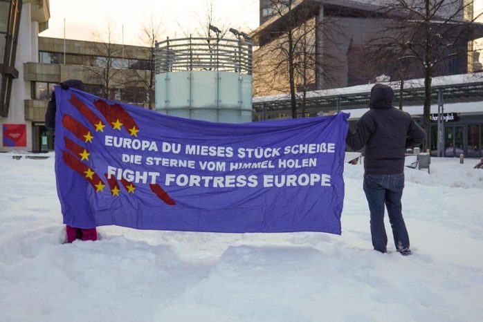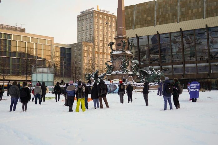 Etwa 80 Menschen machten am Nachmittag des heutigen 9. Februar 2021 auf das Schicksal von 91 Flüchtlingen aufmerksam, die auf dem Tag genau vor einem Jahr im Mittelmeer in Seenot gerieten und seither verschollen sind. Bei einer Kundgebung auf dem Augustusplatz wiesen die Veranstalter, ein Bündnis aus dem Aktionsnetzwerk „Alarm Phone“ und der Bewegung „Seebrücke“, auf die Schicksale der Vermissten und ihrer Angehörigen hin. Beide Initiativen fordern ein Ende der tödlichen EU-Grenzpolitik.