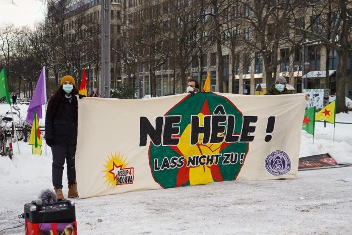 „Mit Angriffen und Besatzungen versucht er zu verhindern, dass neue Machtphalanxen im Mittleren Osten entstehen, an denen die Kurdinnen und Kurden auf freie und demokratische Weise beteiligt sind. So soll der kurdische Völkermord abgeschlossen werden.“