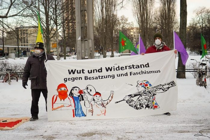 „Die demokratische Förderation Rojava ist ein wichtiges Vorbild basisdemokratischer, ökologischer und feministischer Gesellschaft und als solche seit jeher eine Bedrohung für Diktatoren wie Erdogan. Dessen Überfall steht in einer langen Reihe von Aggressionen, von der Unterstützung des sog. IS und ähnlicher Milizen bis hin zu eigenen militärischen Angriffen. All das geschieht mit der Billigung des deutschen Staates, der das Regime mit Waffenlieferungen und diplomatischer Rückendeckung unterstützt.“, so eine Wortmeldung der Veranstalter.