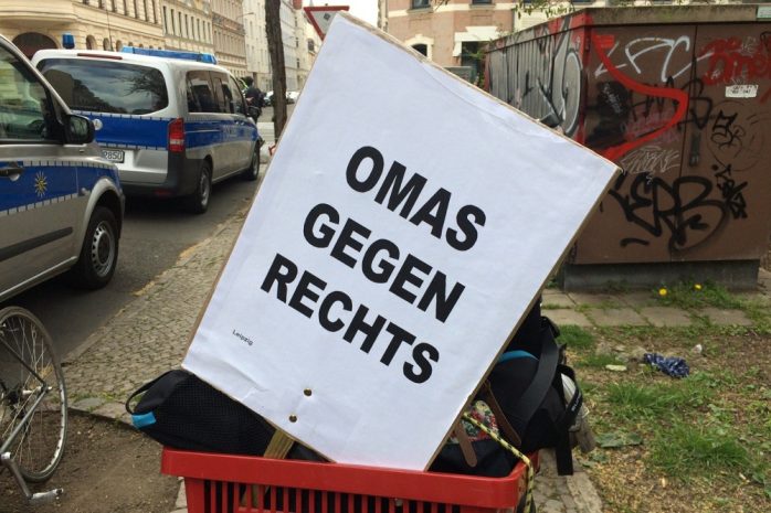 Bei den zugezogenen Neonazis handele es sich vor allem um Kampfsportler aus der Hooliganszene des 1. FC Lok, sagte ein/-e Redner/-in zu Beginn der Veranstaltung. Wie groß das Problem ist, dokumentiert die Initiative „chronik.LE“, die allein in den ersten Monaten dieses Jahres diverse Hakenkreuze, Hitlergrüße, Bedrohungen und Plakate von „Jungen Nationalisten“ und „Identitären“ registrierte.Neonazis würden Stadtteile, in denen sich das Bürgertum nicht gegen solche Aktivitäten wehrt, als „Nische“ betrachten, wo sie ungestört agieren können, hieß es auf der Kundgebung. Deshalb lautete der Aufruf, das Problem nicht zu ignorieren und beispielsweise Sticker zu überkleben und Neonazis aus Geschäften zu werfen.