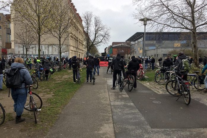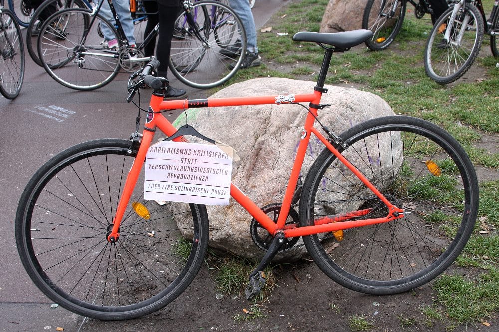 „Kapitalismus in den Shutdown schicken“ mit anschließender Fahrraddemo. Video: LZ, Sabine Eicker