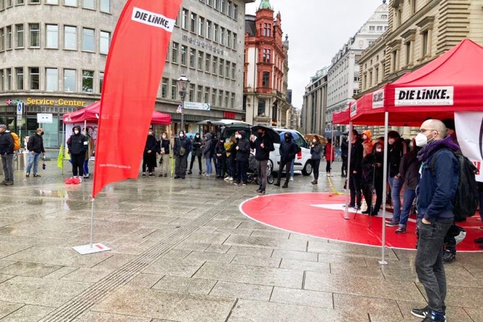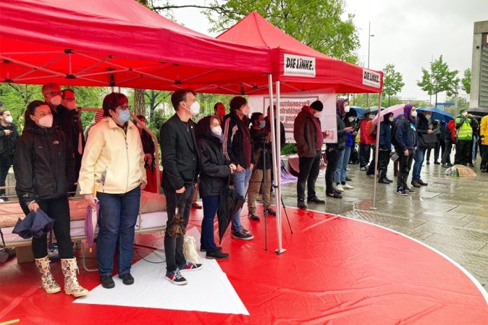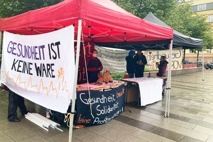 „Vor allem seitdem Covid-19 wütet zeigt sich, wie unentbehrlich die Pflege für unsere Gesellschaft ist. Der Großteil von Pflegeberufen, wie die Alten- Kinder und Erwachsenenkrankenpflege und Assistenzberufe werden dabei systematisch unterbezahlt“, kritisierte eine Krankenschwester von der Poliklinik Leipzig. Diese setzt in Schönefeld auf den Ansatz einer gesamtgesellschaftlichen Gesundheitsversorgung.