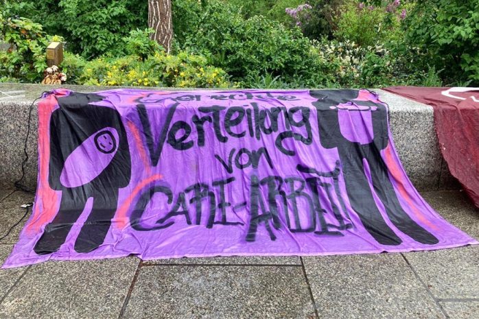 Nicht „nur“ schlechte Bezahlung und Personalnot sind zentrale Probleme im Pflegebereich. In ihrem Redebeitrag wies eine Sprecherin des Feministischen Streikbündnisses darauf hin, dass in vielen Fällen Angehörige sich um pflegebedürftige Familienmitglieder kümmern; von ihnen sind mehr als zwei Drittel weiblich.
