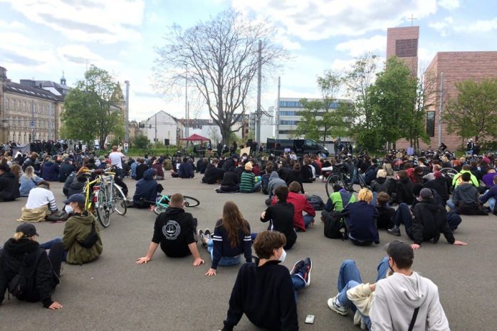 Auf dem Wilhelm-Leuschner-Platz sind hunderte Radfahrer/-innen aus Connewitz angekommen. Einige von ihnen werden wohl gleich weiter zum Simsonplatz fahren, wo die „Bewegung Leipzig“ in einer halben Stunde loslegen möchte. Es gibt auch schon die ersten Redebeiträge mit Kritik an der Polizei.