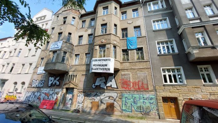 Kurz vor 19 Uhr gab zudem „LeipzigBesetzen“ auf Twitter den Namen des Immobilienbesitzers bekannt. Im Gegensatz zur Ludwigstraße 71 ist es dieses Mal wohl keine einzelne Person, sondern eine Firma. So habe die „Immovaria GmbH laut ihrer Website 21.000qm unprojektierte Flächen, sprich: Leerstand“, so der Twitterkanal der Hausbesetzer/-innen.