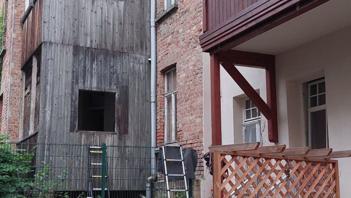 Gleichzeitig sind Beamte der Polizei schon mal im Nachbarhaus gewesen. Offenbar, um zu schauen, ob sie so – wie in der Ludwigstraße – Zugang zur Tiefe Straße 3 bekommen können. Das Viertel entlang der Zweinaundorfer und Riebeckstraße ist von vielen untereinander erreichbaren Hinterhöfen geprägt, dies sollte also kein Problem sein.