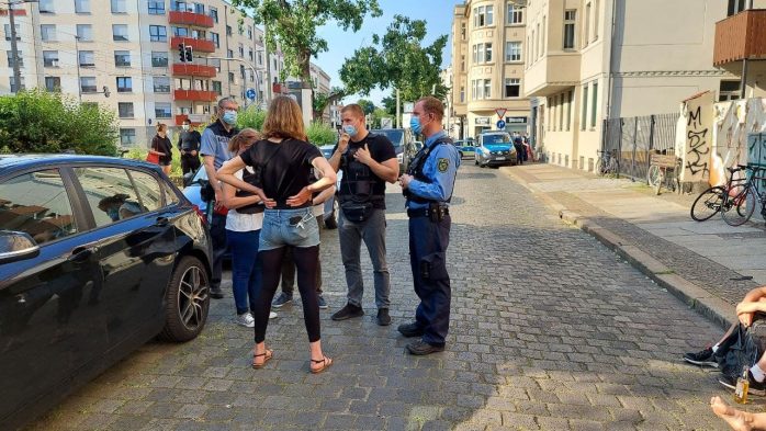 Anwohner/-innen rufen dabei „Ihr seid nicht allein“ und bekunden so Sympathie für die beiden Festgenommenen. Ihnen wird nun Hausfriedensbruch vorgeworfen. Offenbar hatte der Einsatz so lange gedauert um in der Immobilie Beweise zu sichern.