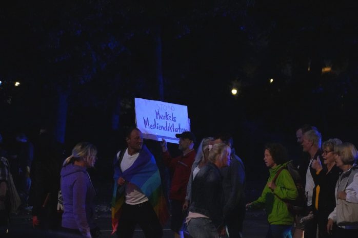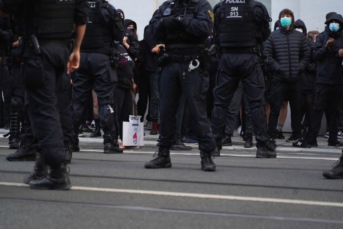 Nach Ende der ansonsten durchgehend friedlichen Gegenversammlung kam es vor dem Naturkundemuseum zu einem weiteren Vorfall. Dort setzte ein Polizist offenbar Pfefferspray ein, um Antifaschist/-innen von Bürgerbewegten fernzuhalten, welche jedoch völlig unbedrängt abfahren konnten.
