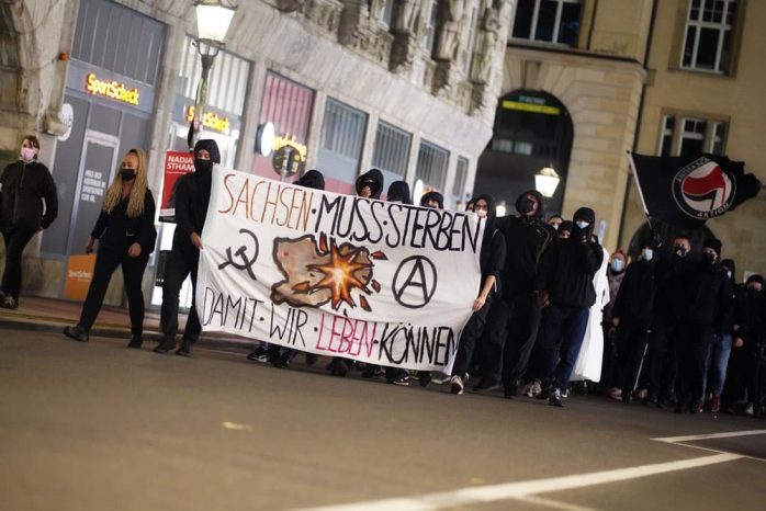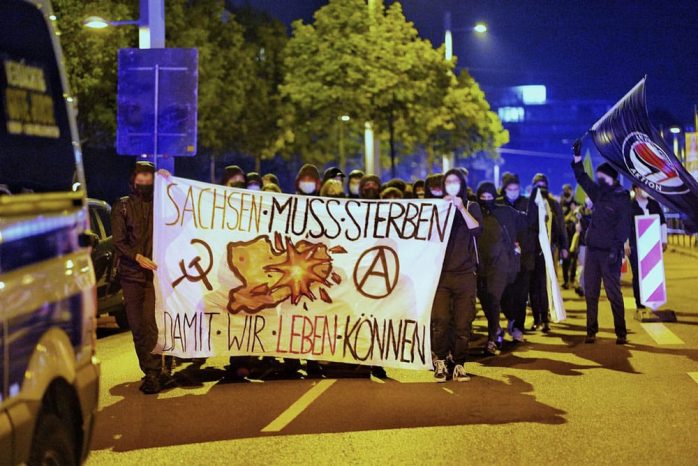 Es war eine erste Reaktion auf die vor allem im ländlichen bis kleinstädtischen Sachsen erzielten Wahlergebnisse der AfD der Bundestagswahl vom Sonntag von teils über 30 Prozent. 24,6 Prozent bei den Parteistimmen und alle Direktmandate außerhalb der Städte Dresden, Leipzig und Chemnitz ließen heute spontan etwa 150 Menschen zu einer antifaschistischen Demo ab 19 Uhr in Leipzig zusammenkommen.