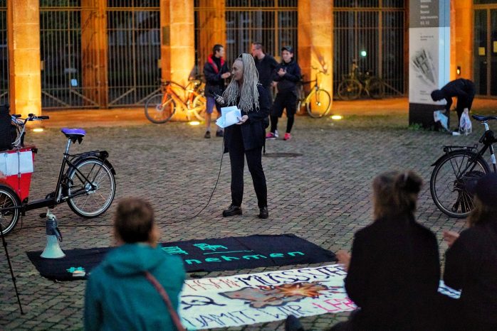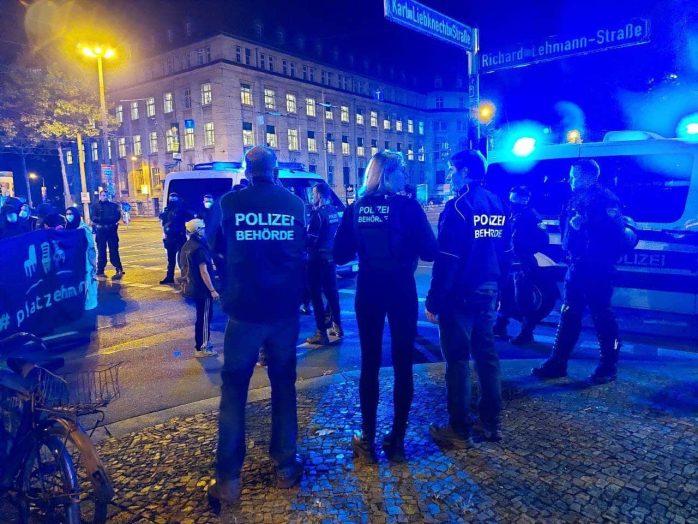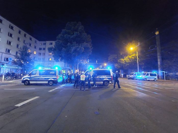 Geplant deshalb, weil gegen 21 Uhr auf Höhe der Richard-Lehmann-Straße die Einsatzpolizei einen überraschenden Stopp auferlegte. Aktuell befindet sich die Demonstration genau an dieser Ecke und ist von Polizeibeamten umstellt. Offenbar gibt es Debatten darum, dass hier eine weitere Demonstration angemeldet werden müsse, um den Weg fortsetzen zu dürfen.