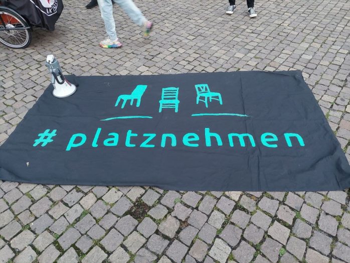 Zum Start der Versammlung von „Leipzig nimmt Platz“ (LnP) gab es Redebeiträge auf dem Johannisplatz, in welchen Versammlungsanmelderin Irena Rudolph-Kokot (SPD-Vorstand Leipzig), Marco Rietzschel (SPD) und Stadtrat Jürgen Kasek (Grüne) vor allem diesen Umstand im Auge hatten.Rudolph-Kokot rief auch im Wissen um die guten Ergebnisse ihrer Partei in Sachsen dazu auf, zukünftig noch deutlicher als bislang antifaschistische und linke Kräfte in den kleineren und mittleren Städten und Gemeinden Sachsens von Leipzig aus zu unterstützen, was Rietzschel mit einem Hinweis auf den anstehenden Christopher Street Day (CSD) in Zwickau am kommenden Samstag zeitnah präzisierte.