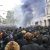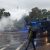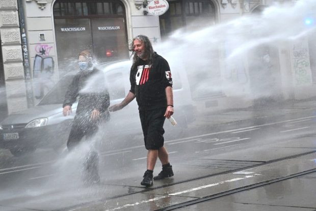 Die Wasserwerfer sind da und beherrschen die Szenerie. Stück für Stück werden die brennenden Barrikaden gelöscht, teils werden die Wasserwerfer dabei jedoch mit Steinen attackiert. Wiederholt warnt die Polizei, dass der Wasserstrahl auch in höherer Schärfe gegen Personen eingesetzt werden könnte.