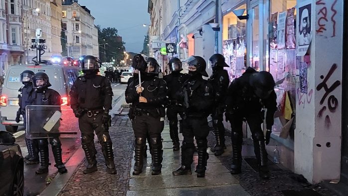 Aktuell laufen noch immer polizeiliche Maßnahmen in Leipzig Connewitz, eine Ingewahrsamnahme ist zur Stunde bekannt.