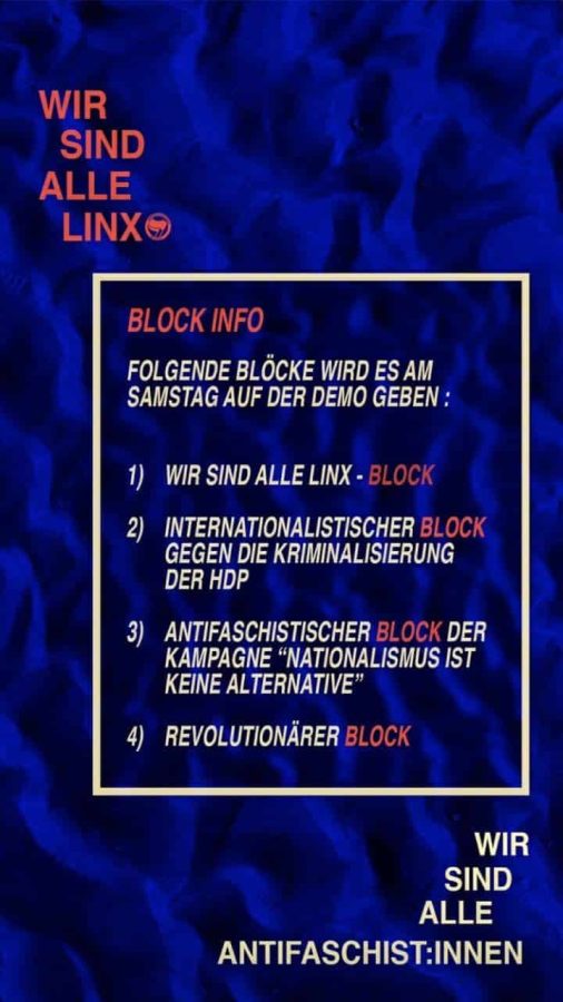 Dass es heute nicht nur um Lina E. und den deutschen Faschismus geht, zeigt ein weiterer Redebeitrag. Dabei geht es um die Auseinandersetzungen, mit denen sich die Kurden beziehungsweise die Partei HDP mit der türkischen Regierung und der AKP konfrontiert sieht.
