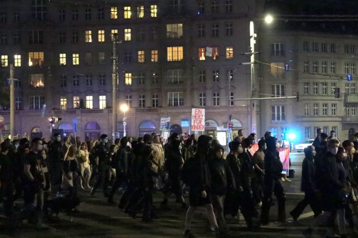 Die rechtsradikale „Bürgerbewegung Leipzig 2021“ hat am Montag, dem 6. September, erneut auf dem Leipziger Innenstadtring demonstriert. Im Vergleich zu den Vorwochen hatten die Corona-Leugner/-innen leichten Zulauf – zwischen 75 und 100 Personen dürften sich an dem Aufzug beteiligt haben. Etwa genauso viele Menschen protestierten dagegen. An mehreren Stellen gelang es ihnen für einige Minuten, Sitzblockaden zu errichten.